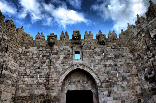 يقع في منتصف الحائط الشمالي لسور القدس، ويعود تاريخه إلى عهد السلطان سليمان القانوني العثماني، تعلو هذا الباب قوس مستديرة قائمة بين برجين. أقيم فوق أنقاض باب يعود إلى العهد الصليبي، ويسمى أيضا باب دمشق؛ لأنه كان مخرج القوافل إليها.