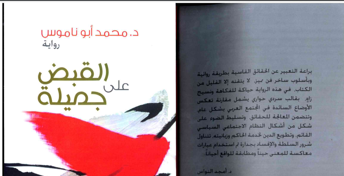 هذه الرواية التي تأخذنا إلى محكيات الواقع عبر معادلات حوارية على مستوى أسلوبيتها وعبر حكاياتها المستلة من تواتر –تلك المحكيات الروائية- وعلى ألسنة أبطالها الذين يعضدون فهم الواقع المتغير وشبكة علاقاته المركبة، وفي رمزية المقولات الحكائية باللغة الواضحة والمواربة بآن معاً، نقف على أرضية رواية اسمها «ليلة القبض على جميلة»، وجميلة دالة الاسم والمعنى ودلالة التغيير والاستنهاض ومناهضة القبح ومتعاليات الواقع بمستوياته كافة، وبنماذجه المختلفة التي باتت تمثل بأسلوبية الرواية وجهات نظر متعددة لمقاربة الحلم والممكن في واقع مترع بالفساد والتخلف والقهر، في مقابل طليعة تؤمن بالتنوير والتغيير وتجهر بأفكارها بقوة الحق وبمعيار الجمال، هم سدنة الوعي الجديد الذي يحمله محكي الرواية عبر متخيلها وعبر ما تحتشد به من صراعات سوف يقف القارئ الفطن عند مجازاتها وما تؤول إليه بوصفها صيرورة مجتمعية وأخلاقية ومعرفية، إنها سيرورة الوعي الذي تؤثثه الرواية في ذاكرة المتلقي بدلالة الأسماء التي تتبادل البطولة من «حكيم إلى حكم إلى جميلة» إلى النقيض «مولانا والخبيث» وغيرها من الأسماء التي تشكل علامة في المحكي الروائي الذي يواصله الأديب د. محمد أبو ناموس في مشروعه الروائي المختلف، والذي يعيد لنا في هذا السياق ذاكرة الحكايات والليالي التي تجهر بالألم والأمل، وبضروب الصراع الضاري من أجل الحقيقة وحدها على الرغم من أن «موت جميلة» لا يعني نهاية الرواية بل بداية شروقها وإشراقها وانعتاق وعي أبطالها لمقاربة الممكن والمحلوم به والمشتهى، هي بهذا المعنى سيرورة وعي جمعي يأخذ من ميراث الليالي الفلسطينية ليضايف إلى ما نسيه الواقع وليتداركه التاريخ ليس بمعنى الوثيقة فحسب، بل بالمعنى الأشمل وهو ميراث الحكايات الناهضة من عتمة ذلك الواقع بضراوة ظلامه وتفتق نوره على أيدي المتنورين الساعين إلى رأب الصدع الذي حاق بأنساقنا السياسية والاجتماعية والمعرفية.