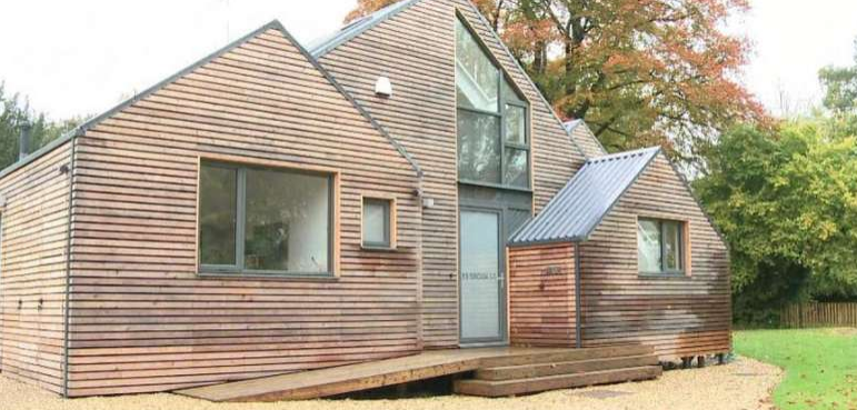ويعد أحد البيوت الواقعة في منطقة مارلو، شرقي بريطانيا، الأول من نوعه في بريطانيا، ويستطيع أن يرتفع أفقيا على أربعة أعمدة.
