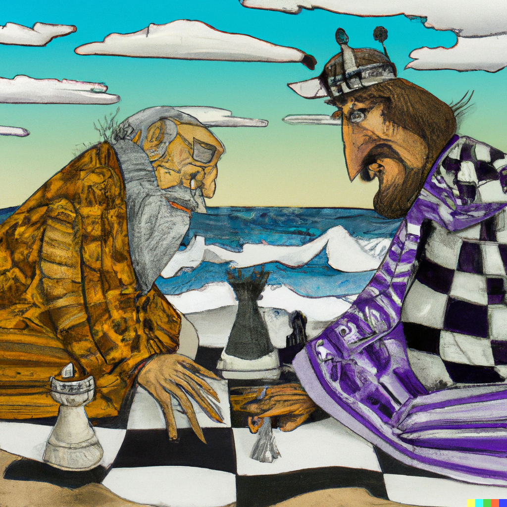 كانوت العظيم يلعب الشطرنج مع أولاف. الصورة منتجة بالذكاء الصناعي .
