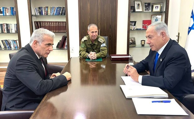 وقال لابيد بعد ساعات من عقد اجتماع التحديث الأمني مع رئيس الوزراء بنيامين نتنياهو، لوسائل الإعلام مساء (الأحد) "وصلت إلى الاجتماع مع نتنياهو وأنا قلق، وزاد قلقي". وعلى حد قوله "أخبرت نتنياهو أن دولة إسرائيل بحاجة إلى وزير دفاعٍ متفرّغ، وعليه أن يعلن أنه سيسحب إقالة غالانت من على الطاولة مرة واحدة وإلى الأبد، وأن يعترف بأن حكومته لا يمكن الوثوق بها، وأن يؤسس لجنة صغيرة، ومنتدى أمنيًّا فعّالًا للتعامل مع الوضع".