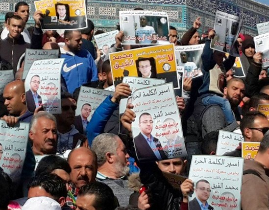 نظم مجموعة من المقدسيين اليوم وقفة في ساحات المسجد الأقصى المبارك، احتجاجاً على مواصلة احتجاز جثامين 10 لشهداء مقدسيين، وتضامنا مع الأسيرين المضربين عن الطعام محمد القيق وعبد الله أبو جابر.