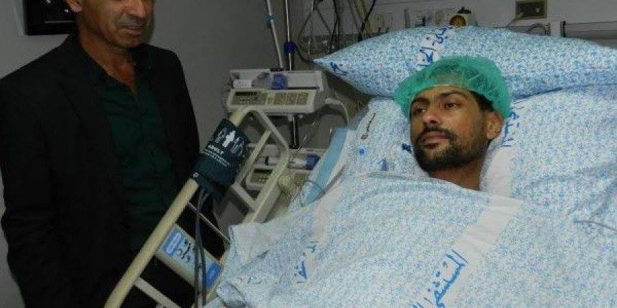 المريض أسامة عامر على سرير المرض في مستشفى الأهلى بمدينة الخليل