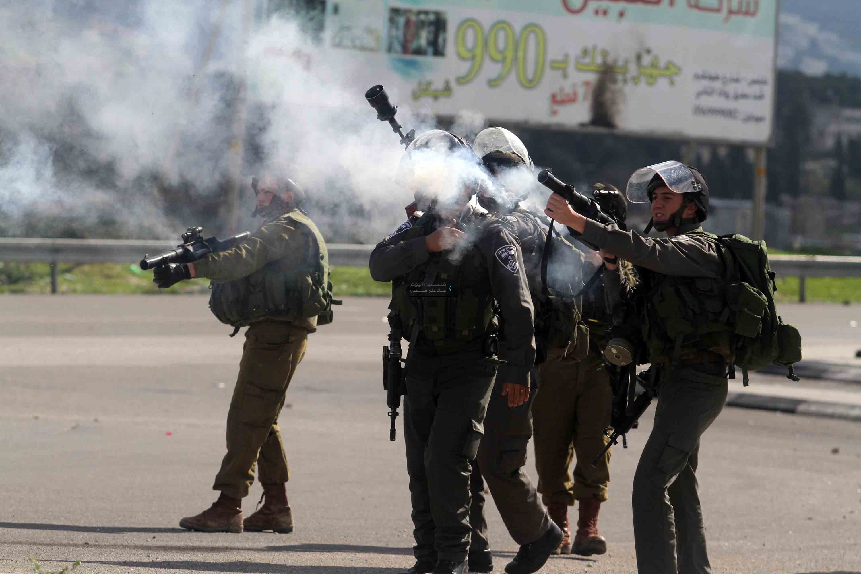 أرشيف: جنود الاحتلال يطلقون قنابل الصوت والغاز تجاه الشبان الفلسطينيين