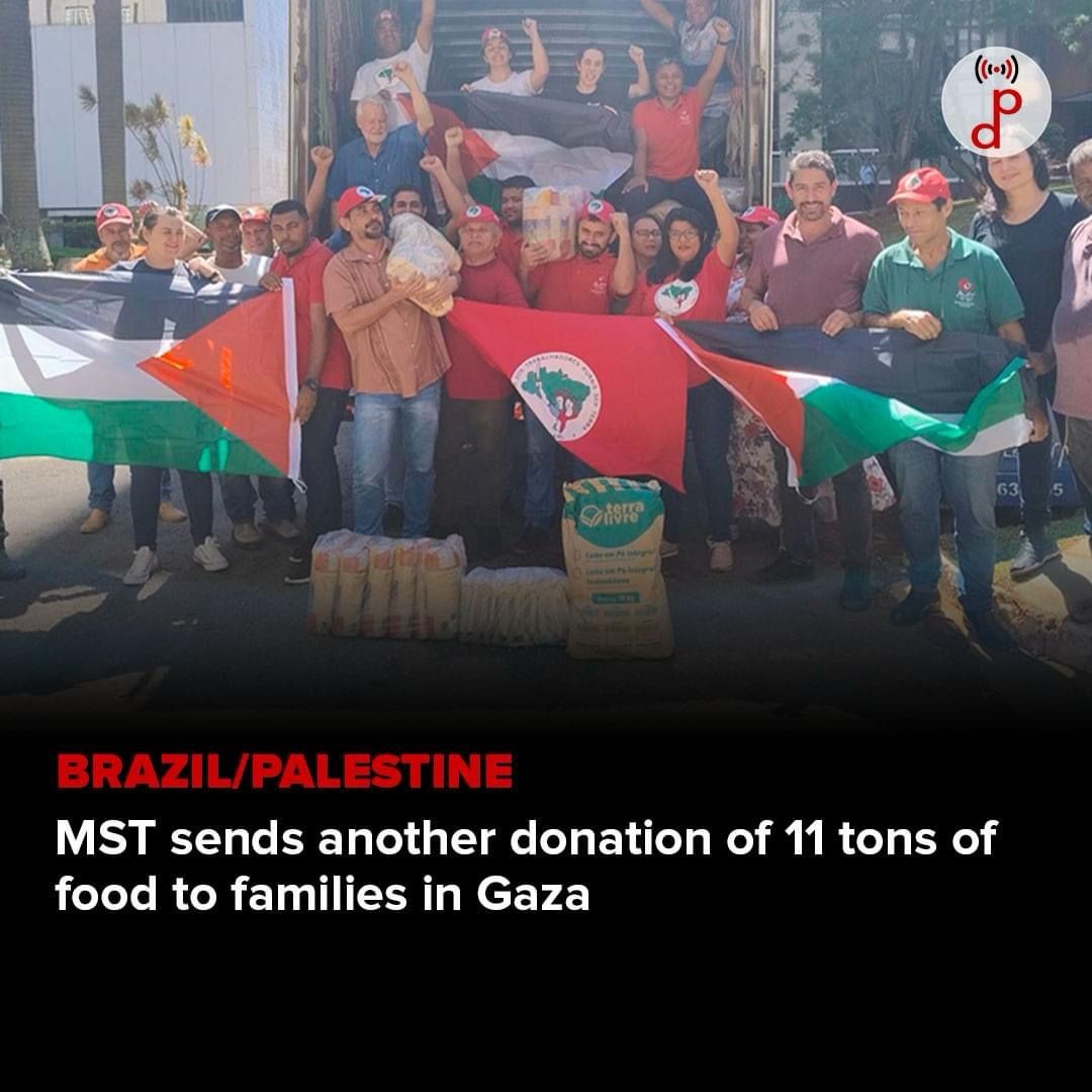 أرسلت حركة العمال الريفيين المعدمين شحنة أخرى من المواد الغذائية التي أنتجها أعضاء الحركة (MST - Movimento dos Trabalhadores Sem Terra) غادرت البرازيل للعائلات التي تعاني من الأزمة الإنسانية في قطاع غزة بسبب الحصار الإسرائيلي الكامل له.