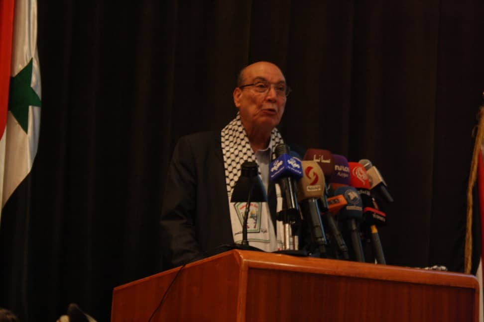 وأضاف أن الكيان الصهيوني أكذوبة كبرى يمكن قهره وهزيمته وأن تحرير فلسطين من بحرها الى نهرها إمكانية واقعية. وأن العدو الأساسي والأول للشعب الفلسطيني وكل شعوب المنطقة وأحرار العالم هي الولايات المتحدة الأميركية التي تدعم الجيش الصهيوني بكل أنواع السلاح والجسور البرية والجوية.