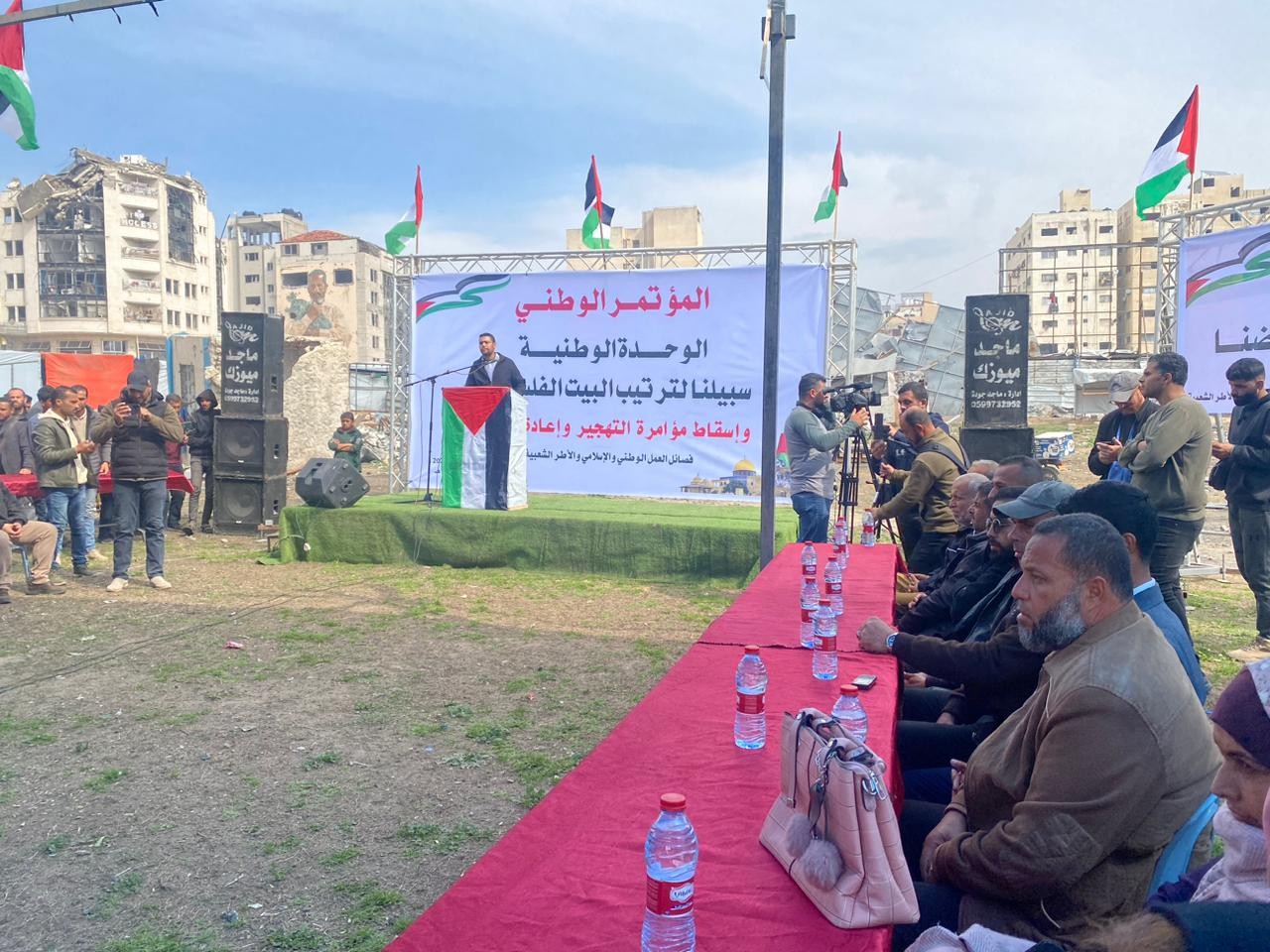 وحمل المؤتمر الذي انعقد في ساحة السرايا وسط مدينة غزة عنوان "الوحدة الوطنية سبيلنا لترتيب البيت الفلسطيني وإسقاط مؤامرة التهجير وإعادة الإعمار".