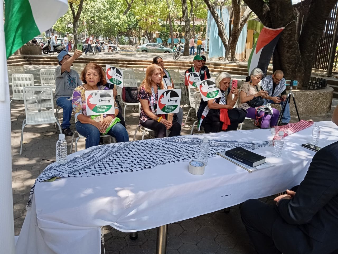 كما أُقيم نشاط في منتزه أرياري بدعوة من المنصة، لممثلين في الكنيسة الفنزويلية، وذلك بحضور الأب دانيا والأب ريمون، إلى جانب عدد من الجمهور والصحفية الرفيقة لليان، تضمن النشاط دعاءً لأطفال ونساء وشيوخ فلسطين، وعزف موسيقى من أجل غزة، وإلقاء قصائد وكلمات من الضيوف.