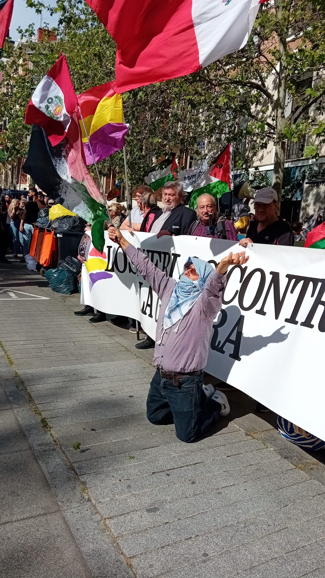 نظمت فعاليات فلسطينية، وقوى التضامن مع الشعب الفلسطيني، الجمعة، تظاهرة امام السفارة الامريكية في مدريد.