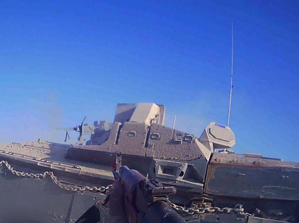 كما أظهرت عناصر القسام يلاحقون دبابة إسرائيلية من المسافة صفر فرت من مكان الاشتباك شرق خان يونس.