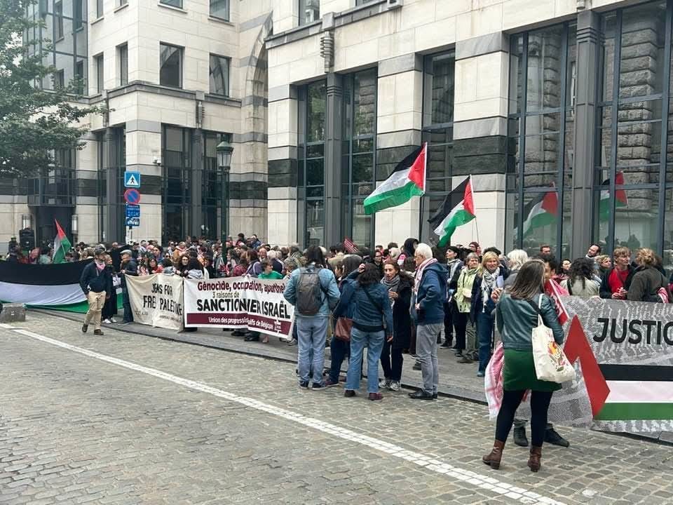 شهدت العاصمة البلجيكية بروكسل، بعد ظهر اليوم، وقفة تضامنية حاشدة أمام مقر وزارة الخارجية البلجيكية، بدعوة من التحالف الوطني البلجيكي من أجل فلسطين، شارك فيها المئات من المتظاهرين والمتضامنين.