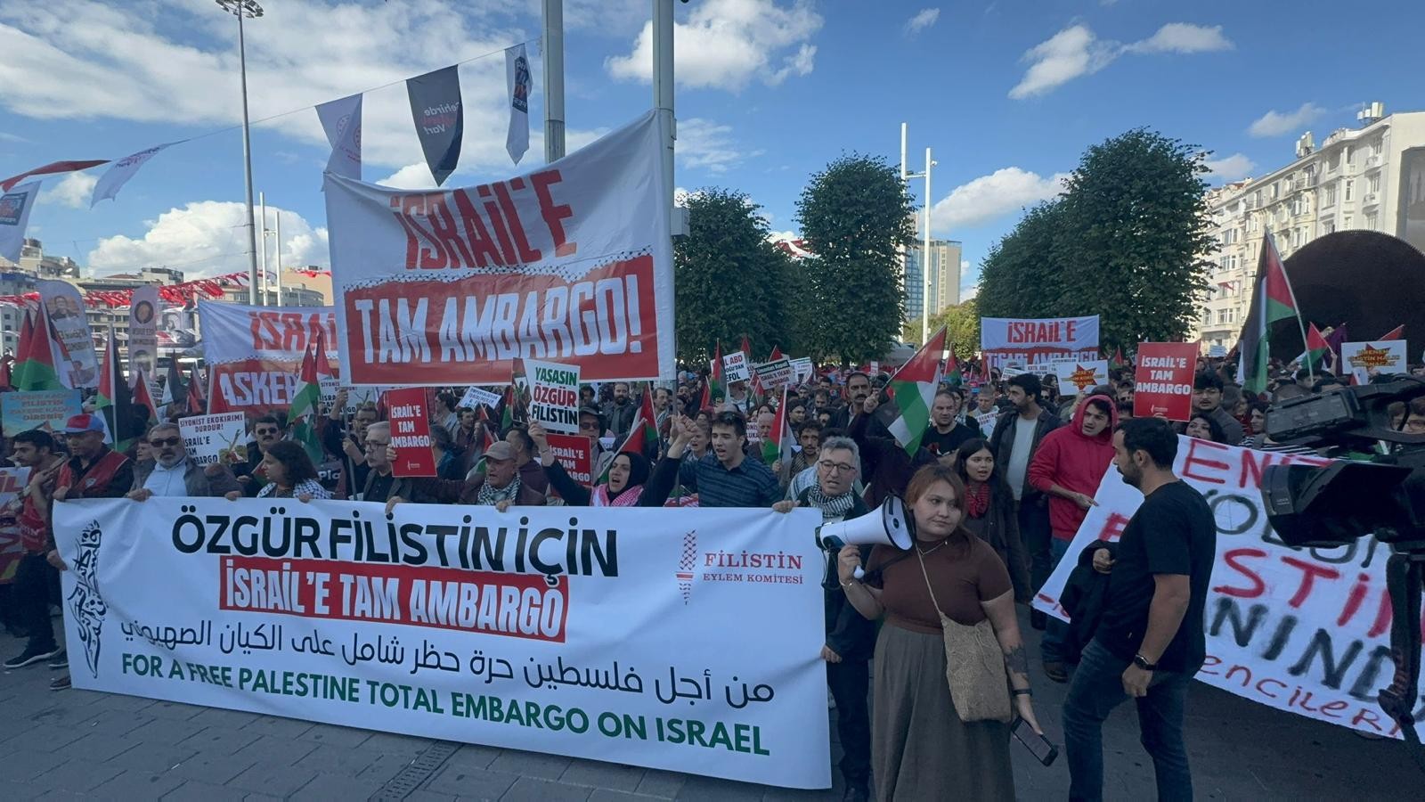 وانطلقت من ميدان تقسيم وسط إسطنبول مسيرة ضخمة دعا إليها تحالف دعم فلسطين، ردد خلالها المشاركون هتافات داعمة للمقاومة الفلسطينية ومؤكدة على حق الشعب الفلسطيني في الحرية من النهر إلى البحر.