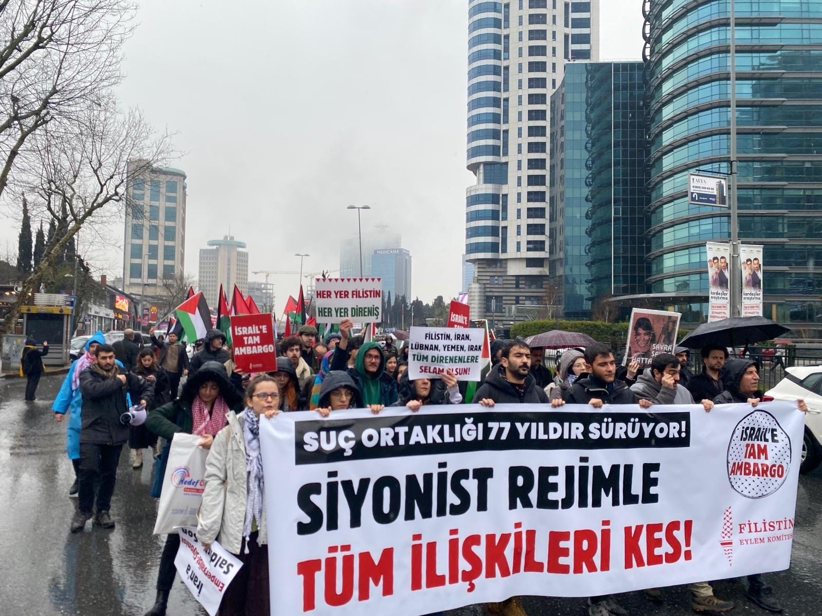 شهدت مدينة إسطنبول اليوم السبت، وقفة احتجاجية حاشدة تزامناً مع الذكرى السابعة والسبعين لاعتراف تركيا بدولة الاحتلال الإسرائيلي. واحتشد المتظاهرون للمطالبة بضرورة سحب الاعتراف الرسمي بـ "النظام الصهيوني" وفرض حظر شامل عليه.
