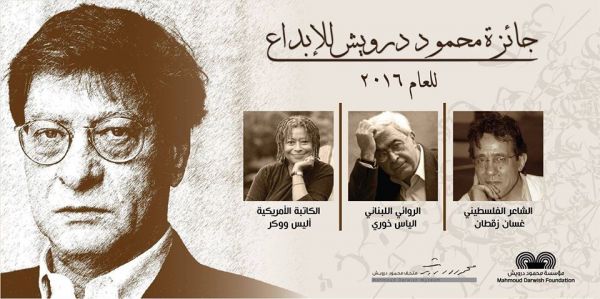 ررت لجنة جائزة محمود درويش للإبداع بعد مداولات استمرت لمدة يومين في دورتها السابعة المنعقدة في العاصمة الأردنية عمّان ما بين 4-5/3/2016، أن تمنح الجائزة هذا العام إلى الشاعر الفلسطيني غسان زقطان، والأديب اللبناني إلياس خوري، والكاتبة الأمريكية أليس والكر.