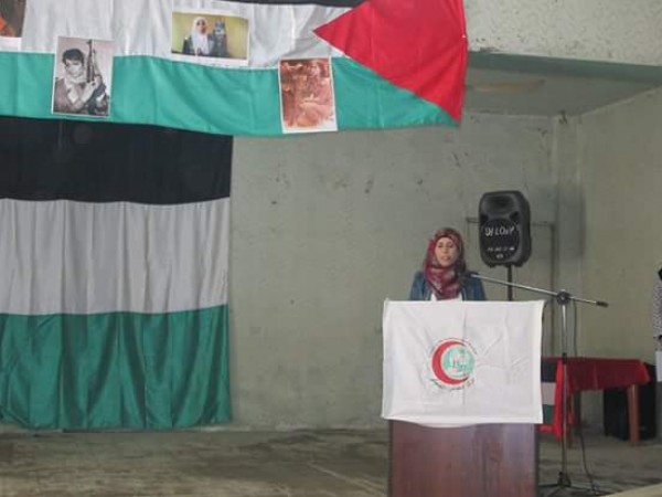 وتحت شعار المرأة هي الرفيقة.. الوطن.. الحياة.. افتتحت عريفة الحفل مروة ماجد مصطفى الاحتفال بالوقوف دقيقة صمت على أرواح الشهداء الأبرار، تلاها النشيد الوطني الفلسطيني.