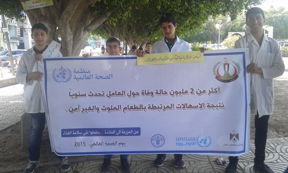 نظمت دائرة التثقيف الصحي بوزارة الصحة بغزة، اليوم، احتفالا بمناسبة يوم الصحة العالمي. وحمل الاحتفال شعار "الغذاء من المزرعة إلى المائدة".