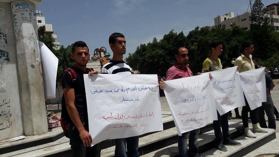 نظم اتحاد الشباب التقدمي الفلسطيني "تجمع الخريجين التقدمي" اليوم، وقفة تضامنية مع الشاب الخريج سعيد اللولو، المعتصم في ساحة الجندي المجهول وسط مدينة غزة مطالباً بحقه في الحصول على وظيفة.