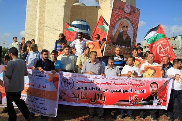 نظمت الجبهة الشعبيّة لتحرير فلسطين بمحافظة رفح مساء اليوم، مسيرة ووقفة تضامنيّة حاشدتين دعماً وإسناداً للأسير المضرب عن الطعام بلال كايد، وللأسرى في سجون الاحتلال.
