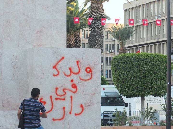 وكان قام الأمن التونسي باعتقال رئيس الاتحاد العام لطلبة تونس غسان بوعزي على خلفية كتابته لهذه العبارة، بالإضافة لاعتقال حمزة النصري، وتم إطلاق سراحهما بعد ذلك على إثر وقفة احتجاجية أمام مركز الشرطة الذي تم اعتقالهم فيه.