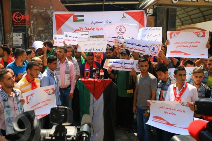 الأطر الطلّابية الديمقراطية والوطنية، كان لها كلمتُها، التي أعلنتها صباح اليوم الأحد، خلال مؤتمر صحفي، عقدته أمام البوابة الرئيسية لجامعة الأقصى، بمدينة غزة، إذ طالبت "بضرورة تحييد المؤسسات التعليمية عن أي مناكفاتٍ سياسية تحدث بين طرفيّ الانقسام -حركتيّ فتح وحماس- والتوقف عن تصعد أزمة الجامعة، وإعادتها إلى هيكلية النظام السياسي الفلسطيني".