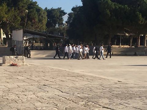 وقالت المصادر المحليّة أن 16 مستوطناً اقتحم باحات المسجد الأقصى، بالتزامن مع منع شرطة الاحتلال بعض الشبان الفلسطينيين –أقل من 30 عاماً- من دخول الأقصى، وواصلت إجراءاتها المُشددة في تفتيش واحتجاز هويّات الفلسطينيين الوافدين للمسجد.