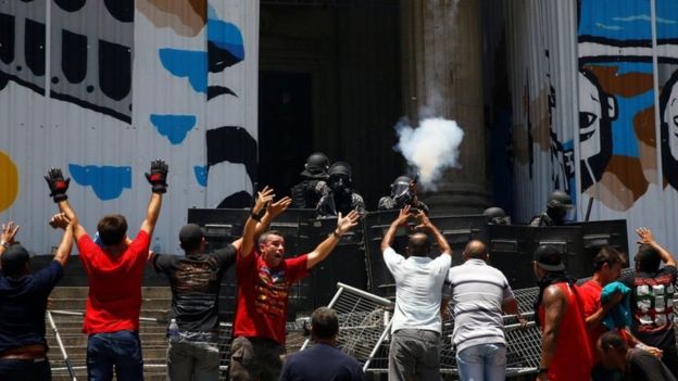 وأطلقت قوات الشرطة في مدينة ريو دي جانيرو قنابل الغاز باتجاه عمال بالقطاع الخاص، كانوا يتظاهرون احتجاجاً على خطة لخفض النفقات.
