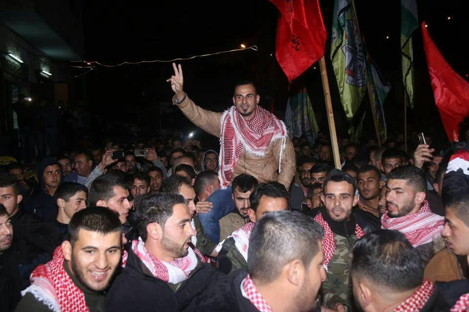 شارك آلاف الفلسطينيين من مدن الضفة المحتلة والداخل المحتل، مساء اليوم الاثنين، باحتفال تحرر القائد في الجبهة الشعبية لتحرير فلسطين بلال كايد، في بلدة عصيرة الشمالية مسقط رأس الكايد، شمال مدينة نابلس بالضفة المحتلة.