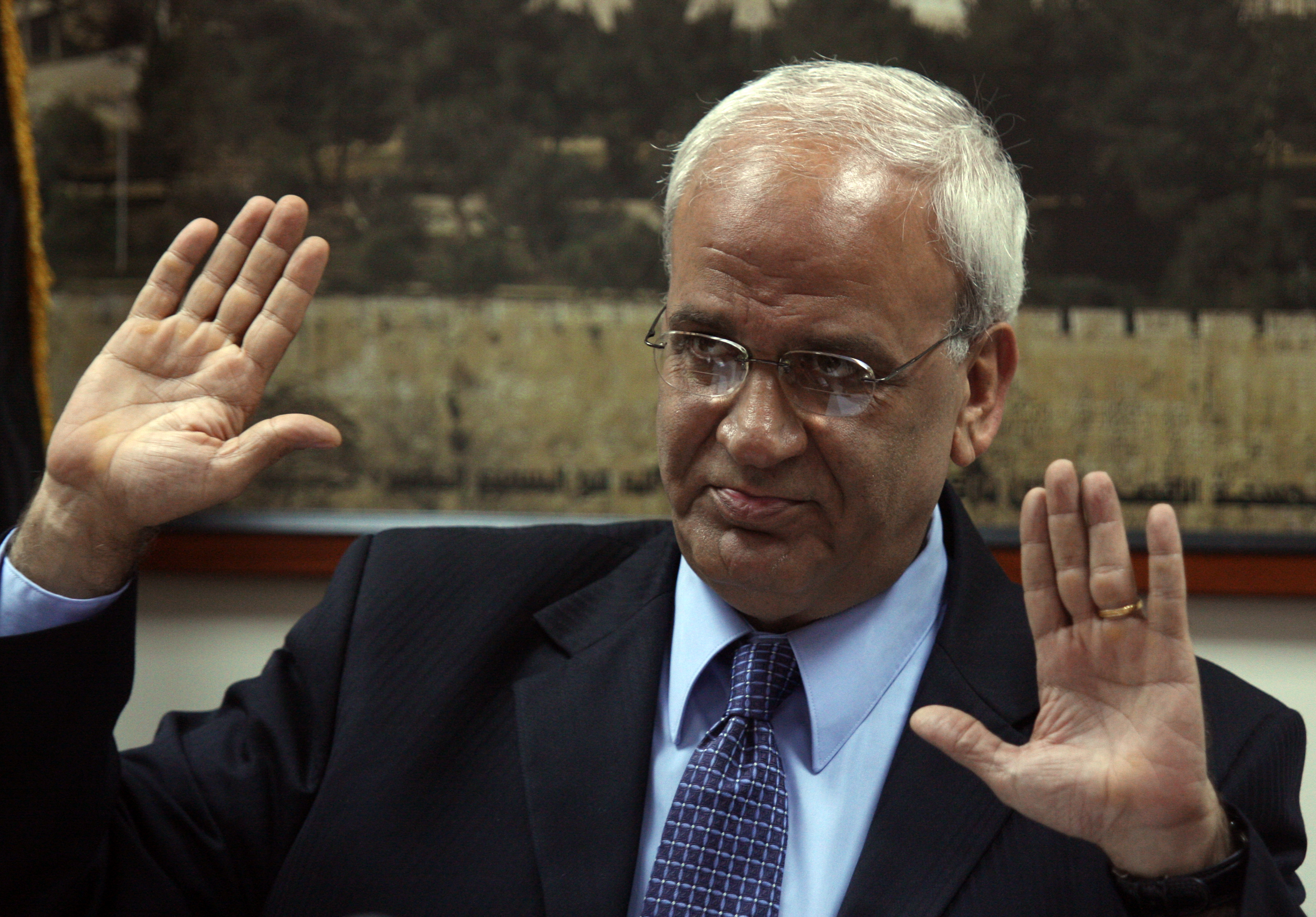 على هامش لقائه ب مبعوث السكرتير العام للأمم المتحدة نيكولاي ميدنوف، وآخرين، قال صائب عريقات عضو اللجنة التنفيذية لمنظمة التحرير الفلسطينية: إن نتنياهو أغلق طريق السلام قبل وبعد تشكيل الحكومة الإسرائيلية، بإصراره رفض مبدأ الدولتين عل حدود الرابع من حزيران عام 1967 ، واستمراره بالنشاطات الاستيطانية وتنكره للإفراج عن الدفعة الرابعة من أسرى ما قبل أوسلو، ورفضه تنفيذ الالتزامات التي ترتبت على الجانب الإسرائيلي والاتفاقات الموقعة.