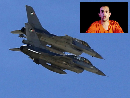 وقت الطيار معاذ الكساسبة، حرقًا، على يد "داعش" الذي نشر شريط فيديو عبر الانترنت في 3 شباط/ فبراير 2015، والذي كان احتجزه منذ 244 كانون الأول/ ديسمبر إثر إسقاط طائرته في سوريا، حرقا وهو حي.
