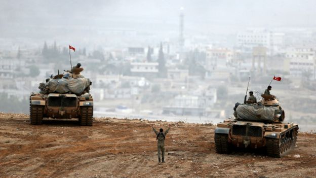 وشنت تركيا منذ عدة أشهر حملة عسكرية سمتها "درع الفرات" لطرد مسلحي تنظيم الدولة والمسلحين الأكراد من المناطق الحدودية في سوريا.