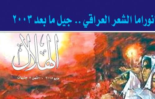 ويضم ملف الشعر العراقى أربعة وعشرين نصا لجيل جديد من الشعراء، بعضهم ينشر للمرة الأولى خارج العراق، وجميعهم ينشرون للمرة الأولى، فى "الهلال" و مصر عموما.