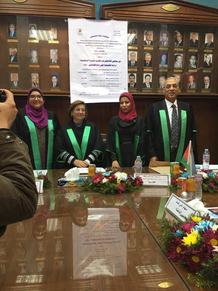 وجرت المناقشة العلنية للرسالة بمقر الجامعة بالقاهرة، وسط حضور أكاديمي من العديد من أصدقاء وزملاء الباحث من جنسيات عربية مختلفة، ولفيف من الطلبة الفلسطينيين وأعضاء في الجبهة الشعبية في مصر.