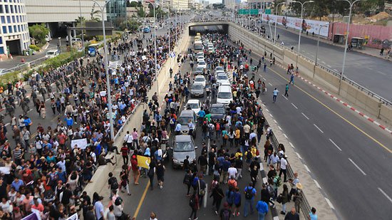 وقالت الصحيفة، إن المسيرة انطلقت خارج أبراج عزرائيلي وسط تل أبيب، والتي تقع في أحد التقاطعات المرورية الرئيسية في المدينة. ونشر الإسرائيليون كلمة الاحتجاج عبر وسائل الإعلام الاجتماعية، مثلما فعل محتجون، الخميس الماضي. وقد عرقل متظاهرون حركة السير في تقاطع محوري بالمدينة كما نام بعضهم على الطريق.