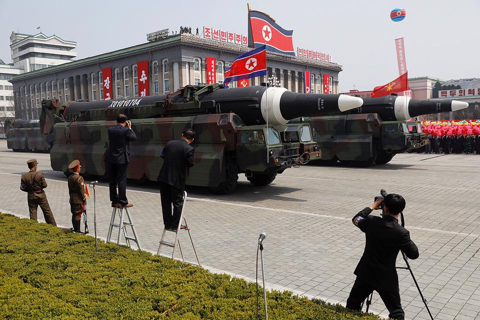 وعرضت كوريا الشمالية الأسلحة الإستراتيجية بما فيها الصاروخ الذي اعتقد بأنه طراز جديد لصاروخ بالستي عابر للقارات.