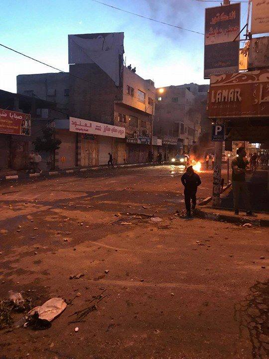 اندلعت مواجهاتٌ عنيفة أمام  المستشفى الحكومي في مدينة الخليل بالضفة المحتلة، حيث اقتحم جيش الاحتلال المنطقة وأطلق قنابل الغاز والرصاص تجاه الشبان، الذين ردوا برشق الحجارة وقنابل المولوتوف.