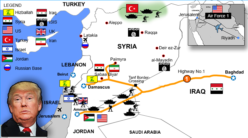 وزعمت المصادر أن قوات أمريكية وبريطانية قد اجتازت الحدود فعلا عبر معبر التنف ويتحسب حزب الله و سوريا لخطر هجوم أميركي أردني إسرائيلي في جنوب سوريا. وطبقا لهذه التقارير، فإن كلا من روسيا وإيران أبلغا الرئيس السوري بشار الأسد إنه إذا احتاج إلى مساعدة عسكرية لدرء مثل هذا الهجوم، فستأتي موسكو وطهران لمساعدته.