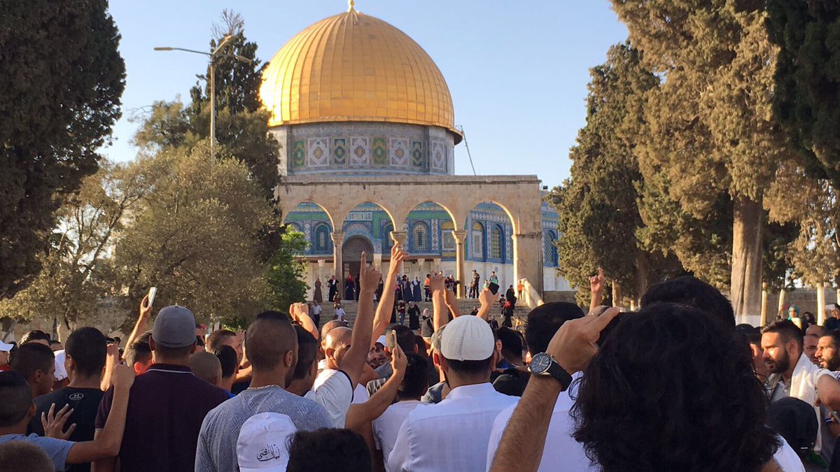 وعاد الشبان إلى أداء الصلاة أمام باب الأسباط (أحد أبواب المسجد الأقصى)، والذي شهد طوال الأسبوعين الماضيين احتجاجاتٍ طويلة، رفضًا لإجراءات الاحتلال بالمسجد الأقصى.