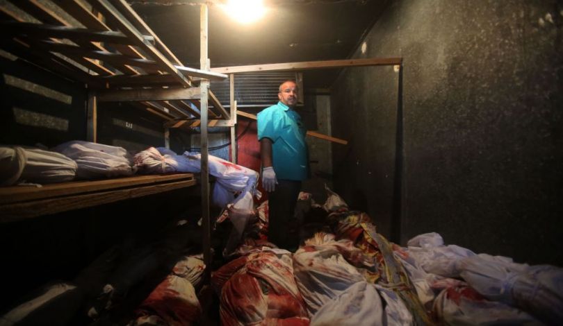 هذا وضاقت الثلاجات بجثامين الشهداء، فاضطرت الطواقم الطبية إلى حفظ بعض منها في مبردات الطعام فيما تم دفن عدد من الشهداء دون أن يتم التعرف عليهم، نظرًا لتقطعهم إلى أشلاء من شدة القصف، كما تم دفن أكثر من جثمان في القبر ذاته، لكثرة أعدادهم وضيق المقابر.