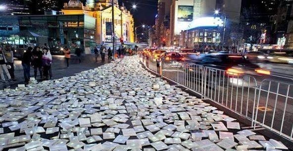 في خطوة تفتقر إليها المجتمعات العربية التي تضعف مطالعتها وقراءتها، وبحسب وكالات أنباء عالمية، ألقت الحكومة الأسترالية 10 آلاف كتاب، في مختلف المجالات والفنون، والعلوم، والثقافات، مع مراعاة مختلف الشرائح العمرية، على أرصفة المدن، ضمن حملة لتعميم المطالعة للجميع؛ ما يمكن الراغبين في القراءة من أخذ الكتب مجانا للمطالعة من جهة ولتشجيع القراءة من جهة أخرى، وتسهيل وصول الكتب إلى يد جميع الفئات.