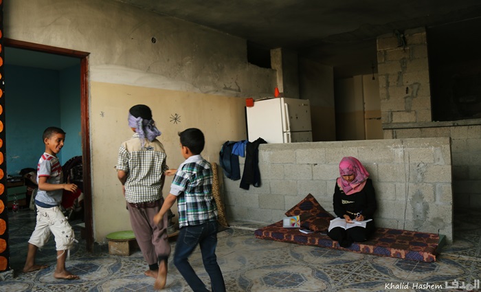 أخوة عبير الصغار لا يجدون مكانًا مناسبًا للعب، فيضطرون للبقاء بقربها في المنزل، يزرعون الفوضى والضوضاء، تتأثر بهم أحيانا، تتذمر، تفقد تركيزها، وتعود تلتقط كتبها، بإصرار منقطع النظير.