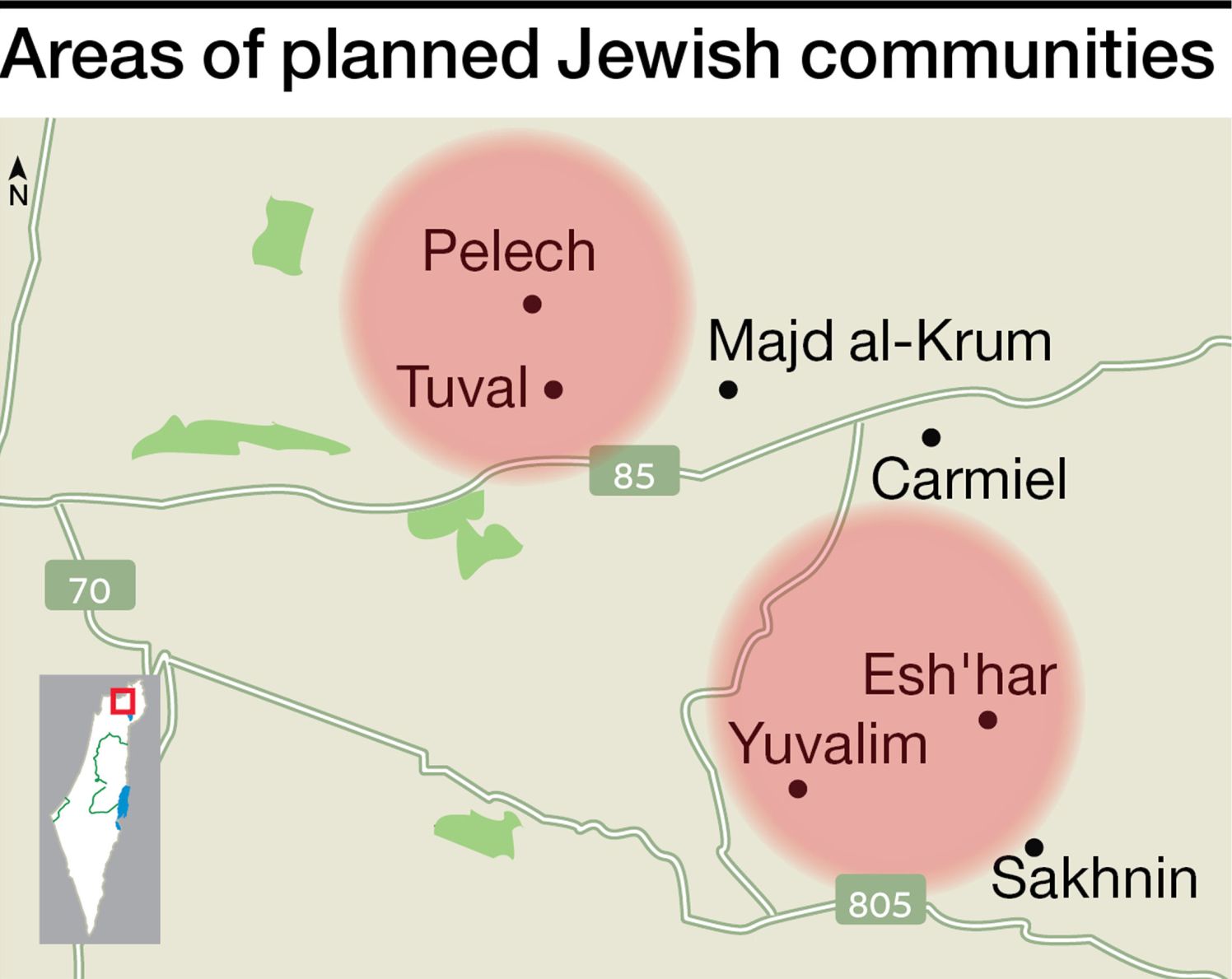 وتقع كلتا المنطقتين بالقرب من المدن العربية الكبيرة، بما في ذلك مجدل الكروم وسخنين، التي تضم مجتمعة 45.000 نسمة. ويبلغ عدد سكان مجلس ميسغاف الإقليمي، وهو اختصاص المجتمعات الجديدة المقترحة، 28.000 نسمة. ويريد قسم المستوطنات بناء 3000 منزل، ولكن ليس من الواضح بالضبط مكان وجودها.