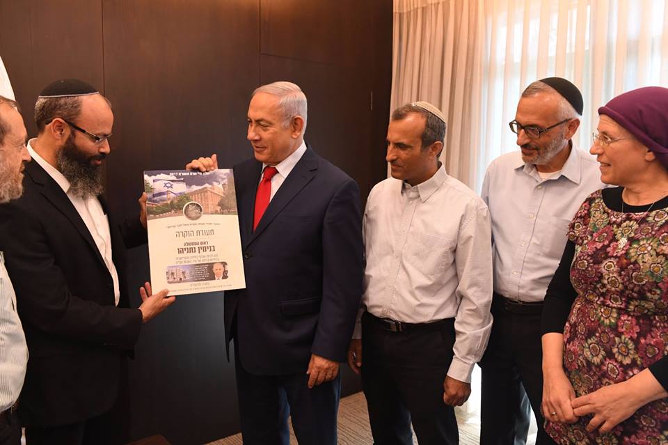 وفي سياق اللقاء الاحتفالي، منح زعماء الاستيطان نتنياهو "شهادة تقدير" لدوره في دعم الاستيطان بمناسبة مرور خمسين عاما على بدء الاستيطان في الخليل، وأهدوه كتابا صادرا عن جامعة بار إيلان يحوي ملخصا للقطع الأثرية التي يزعمون أنهم عثروا عليها وأنها بزعمهم تعود لحقبة قديمة للوجود اليهودي في المدينة.