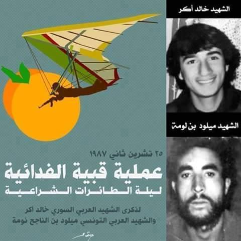 وقفوا فوق وادي البقاع اللبناني بجانب طائراتهم الشراعية وأدّوا التحية العسكرية لقادتهم في ( الجبهة الشعبية لتحرير فلسطين -القيادة العامة) قبل أن يحلقوا مقلعين بطائراتهم الخفيفة، ليلة 25 نوفمبر1987م، الليلة التي سُمّيت في كل الأوساط "ليلة الطائرات الشراعية.