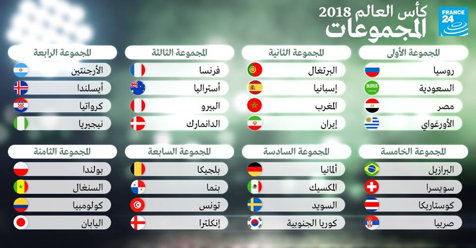 فيما يلي نتيجة قرعة كأس العالم لكرة القدم في روسيا: