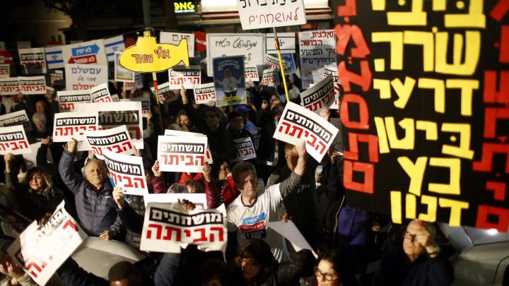 للأسبوع الخامس على التوالي تظاهر ليلة السبت الآلاف من "الإسرائيليين" ضد نتنياهو وفساه وما سموه العار الذي تغرق فيه الحكومة. وقالت هآرتس إن أكثر من 2000 متظاهر في شارع روتشيلد في تل أبيب نددوا بالفساد وظالبوا المسؤولين الفاسدين وفي مقدمتهم نتنياهو بالاستقالة والذهاب إلى البيت. وكان الأسبوع الماضي شهد مظاهرات مماثلة للتنديد بـ"العار" في تل أبيب والقدي المحتلة.