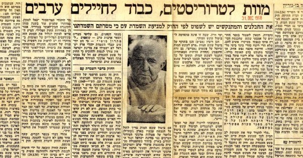 وزعمت الصحيفة أن بن غوريون لو كان حيا اليوم لأيد على الأرجح عقوبة الإعدام، التي تمت الموافقة عليها مطلع هذا الشهر بقراءة أولية في الكنيست، وكان بن غوريون قد نشر مقالته تلك بعد عام ونصف العام على حرب الأيام الستة عام 1967 وبعد عمليتين فدائيتين نفذهما فدائيو الجناح الخارجي في الجبهة الشعبية لتحرير فلسطين في عم 1968.