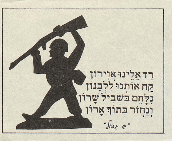 منشور لمنظمة الجنود الصهاينة رافضي الخدمة في حرب لبنان الأولى يقول" حطي هنا أيتها الطائرة، خذينا للقتال في لبنان من أجل شارون ونعود في أكفان"