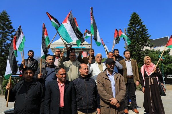 نظمت الأطر العمالية والنقابية في قطاع غزة، اليوم السبت، وقفةً احتجاجية في ساحة الجندي المجهول في مدينة غزة رفضًا لقرار ترامب بنقل سفارة بلاده من كيان الاحتلال لمدينة القدس المحتلة، وذلك بمشاركة واسعة من ممثلي الأطر النقابية والعمالية وممثلي القوى.