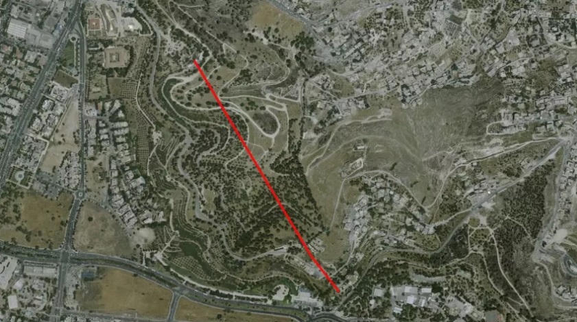 وسيبلغ طول حبل النزول المضغوط 784 مترا يبدأ من منتزه مستوطنة  "أرمون هاناتسيف" المقامة على أراضي جبل المكبر وينتهي مسار الخط في غابة السلام في حي أبو طور.