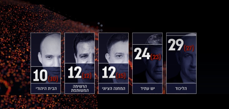 ويظهر الاستطلاع أن الأمور تتقدم نحو انتخابات مبكرة وأن جميع شركاء نتنياهو في السلطة سيحتفظون بمواقعهم، حيث إضافة إلى ما سبق سيحصل حزب البيت اليهودي على عشر مقاعد و " إسرائيل بيتنا" على سبعة، و يهدويت هتوراة سيحصل على ست مقاعد وشاس على خمسة و(كولانو) على 8 -7 مقاعد.